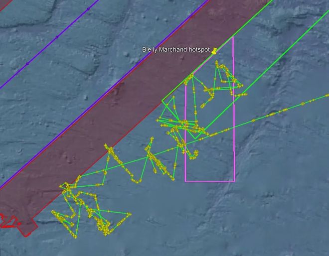 这个区域被认为是MH370极有可能的坠落区域,于2024年3月在MH370失踪十周年纪念仪式上被“海洋无限”公司公开提出。在今年3月11日至3月28日的第二阶段搜寻中,该公司的搜寻船在这片距离第七弧线约55海里的新区域内,执行了类似“割草机”式的地毯式扫描。